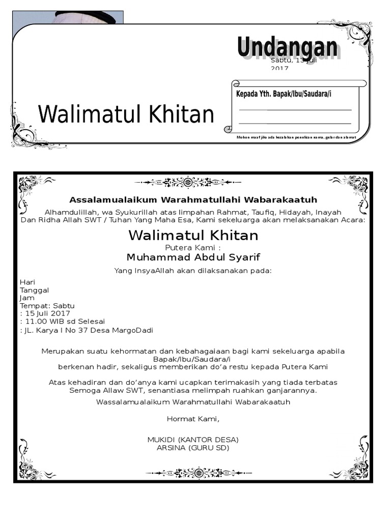 Contoh undangan khitanan yang lucu. Contoh undangan sunat rasul atau undangan khitanan dengan microsoft word g tekno doc. Sangatlah biasa, sebab contoh undangan khitanan bhs jawa adalah pengetahuan yg sangat esensi supaya diketahui. Contoh surat undangan khitanan format word. Free download template undangan with ms word undangan contoh.